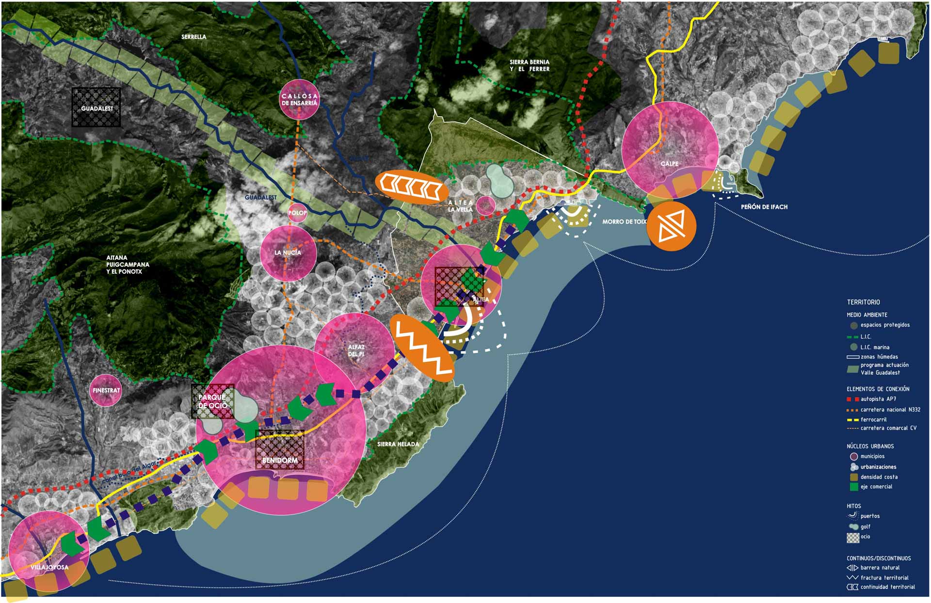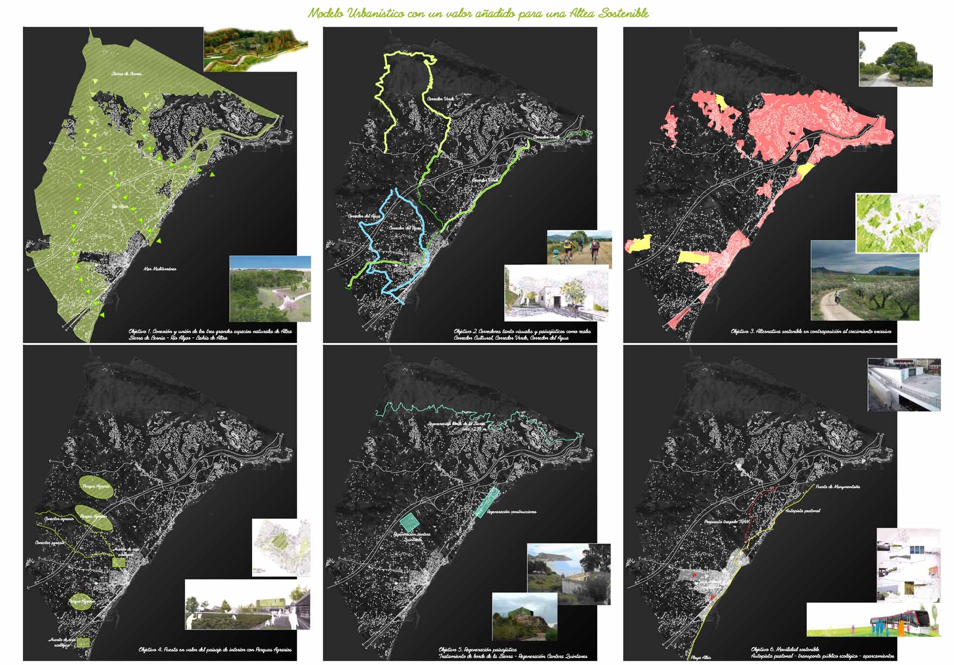 Como profesionales en el campo de la arquitectura, el diseño urbano y la planificación, tenemos una amplia experiencia y un sólido conocimiento técnico en edificación, urbanismo y construcción. Nos hemos encargado de llevar a cabo un análisis y revisión de la estructura territorial y urbana de Altea, y hemos propuesto establecer un modelo de sostenibilidad económica y ambiental que redefina su propio modelo en relación con su entorno.