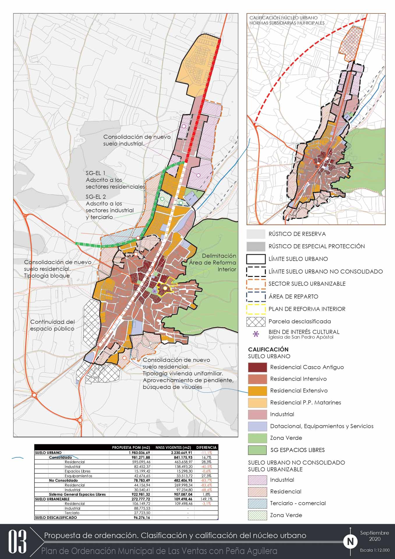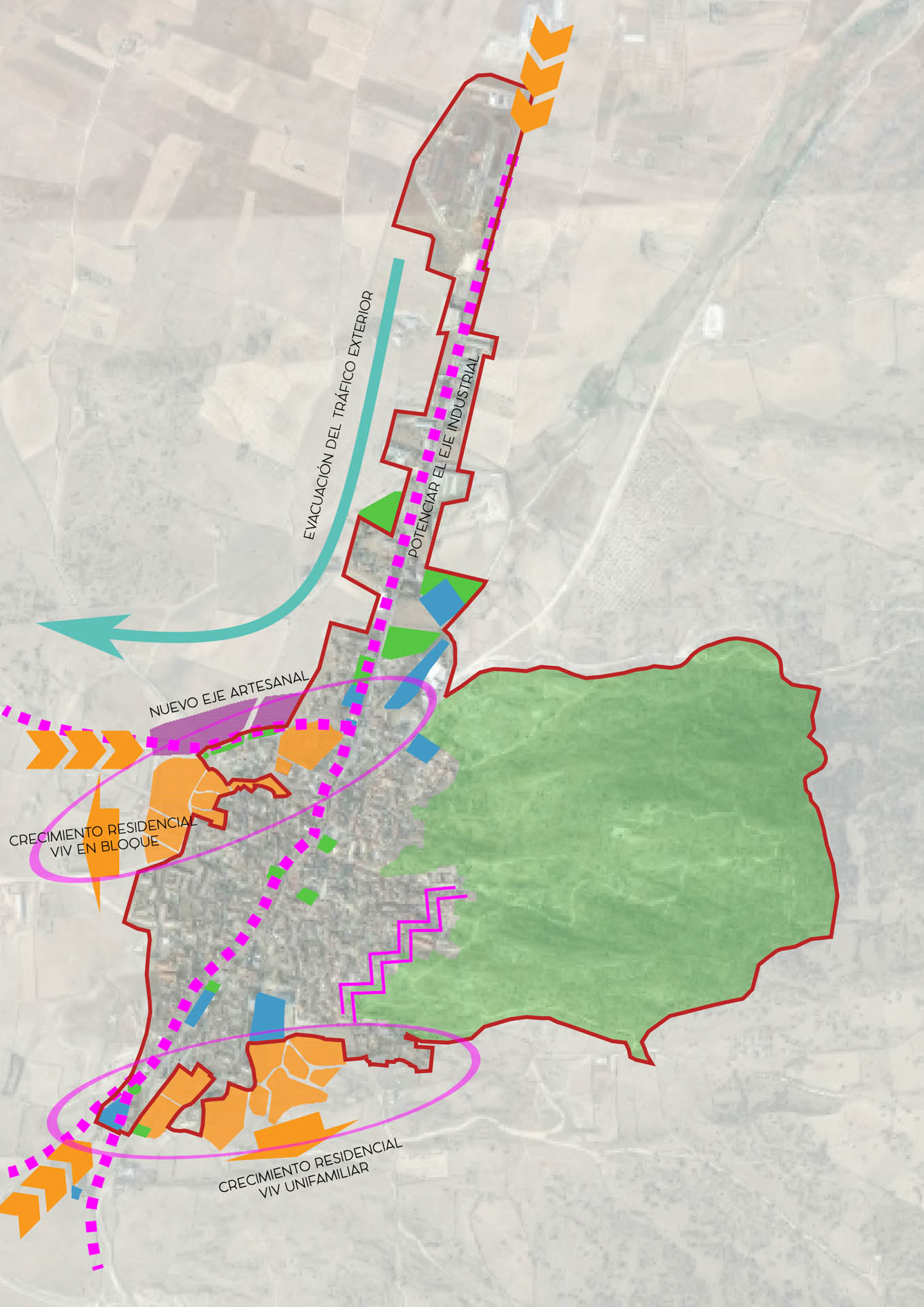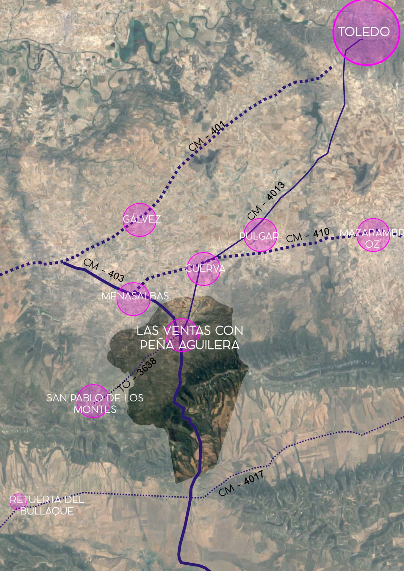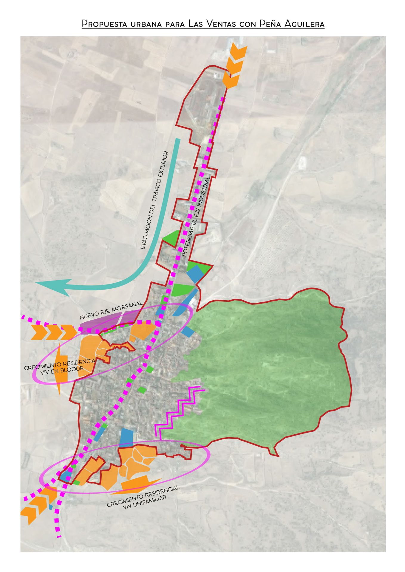 Durante el proyecto, hemos llevado a cabo un análisis exhaustivo y una revisión de la estructura territorial y urbanística del municipio de Las Ventas con Peña Aguilera. El modelo que proponemos se basa en las fortalezas del territorio y no solo en la solución de los déficits más evidentes.
