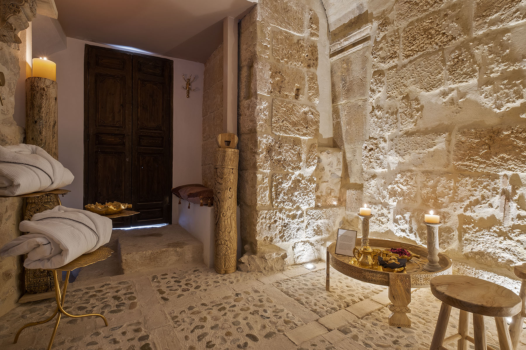Se ha utilizado materiales tradicionales como la madera, la piedra y la roca, con el fin de preservar la autenticidad del edificio y su integración en el entorno. Cada intervención ha sido cuidadosamente pensada para mantener el carácter y la historia del lugar, generando un espacio de bienestar y equilibrio entre lo antiguo y lo contemporáneo.
