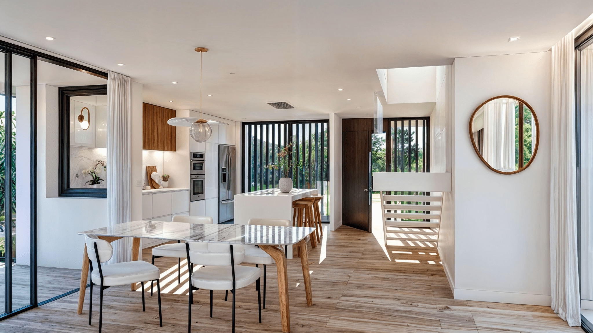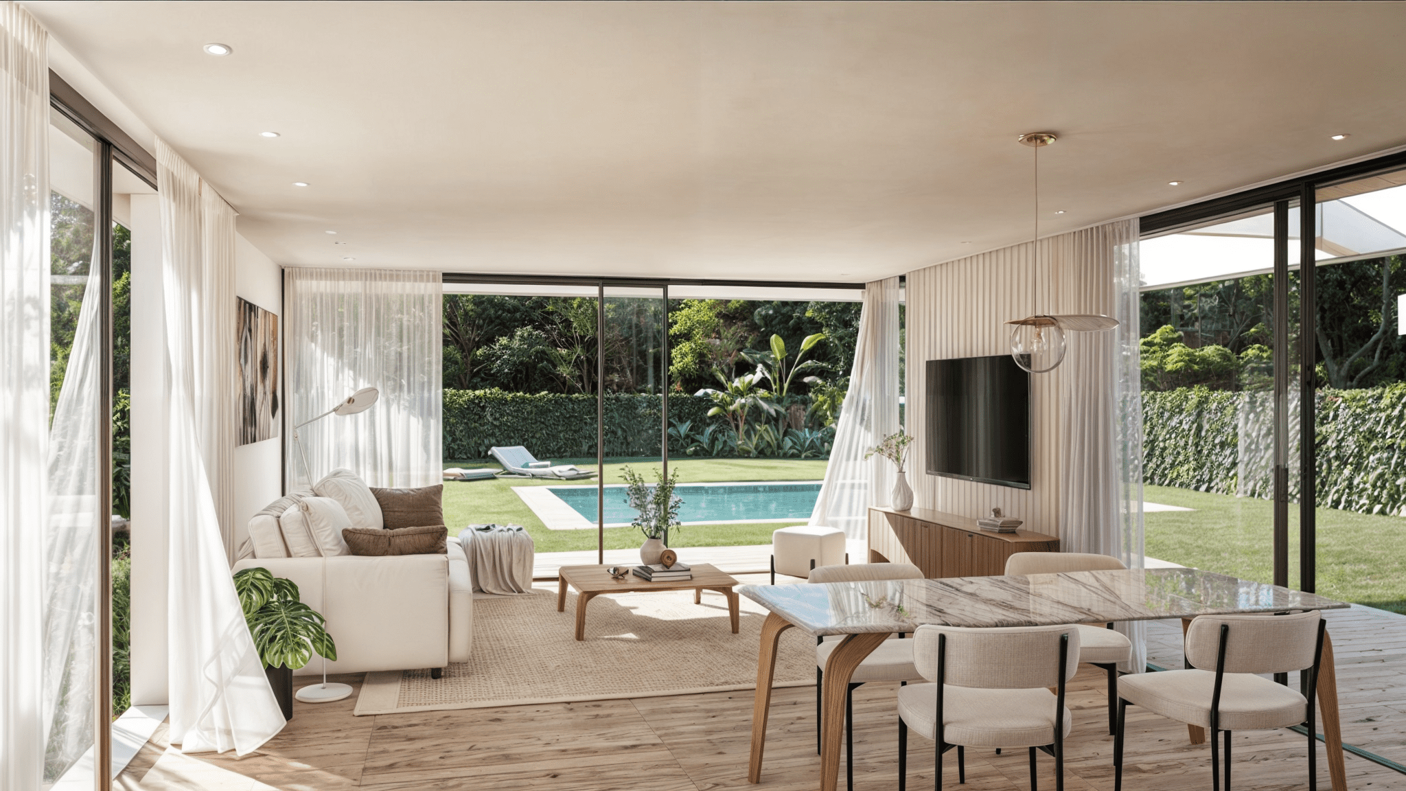 Las viviendas, con sus volúmenes blancos, se integran de manera natural y armoniosa con el entorno montañoso que las rodea, creando un marco inigualable para este proyecto residencial. Este diseño busca resaltar la belleza del paisaje y asegurar que cada hogar se sienta como una extensión del entorno natural.